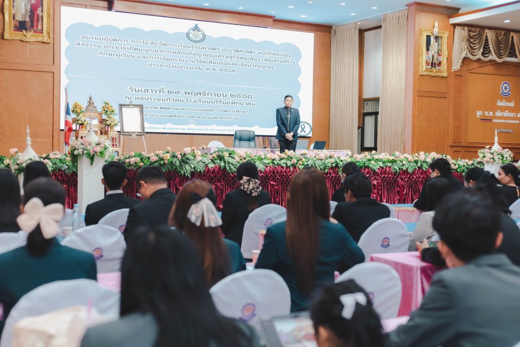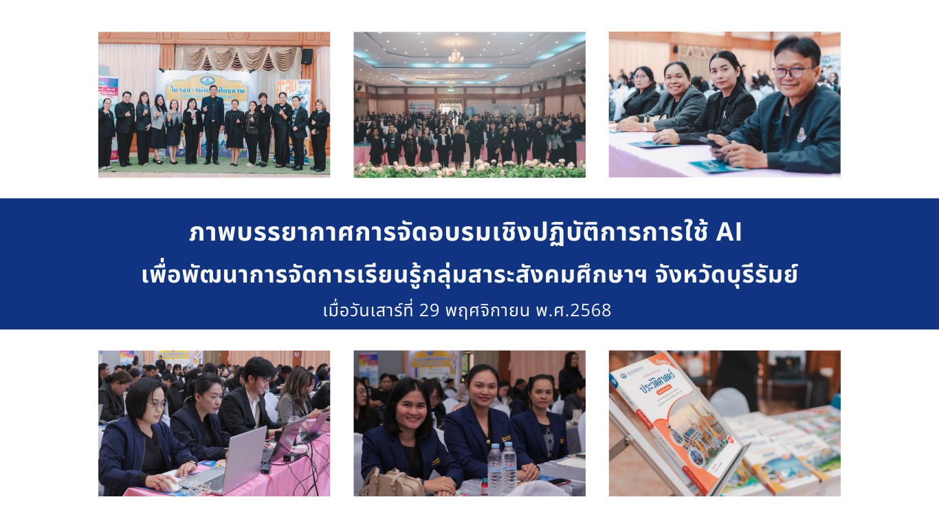 เมื่อวันที่ 29 พ.ย. 2568 บริษัท สำนักพิมพ์เอมพันธ์ จำกัด ร่วมกับ สำนักงานเขตพื้นที่การศึกษามัธยมศึกษาบุรีรัมย์ จัดอบรมเชิงปฏิบัติการ เรื่อง การใช้ AI จัดการเรียนรู้ภูมิศาสตร์ ประวัติศาสตร์ หน้าที่พลเมือง ศีลธรรม ประชาธิปไตย บูรณาการหลักปรัชญาของเศรษฐกิจพอเพียง” เพื่อเสริมสร้างทักษะผู้เรียน และการเขียนรายงานวิจัยสำหรับการขอมีและเลื่อนวิทยฐานะของครูผู้สอน ณ หอประชุมทิวสน โรงเรียนบุรีรัมย์พิทยาคม จ.บุรีรัมย์