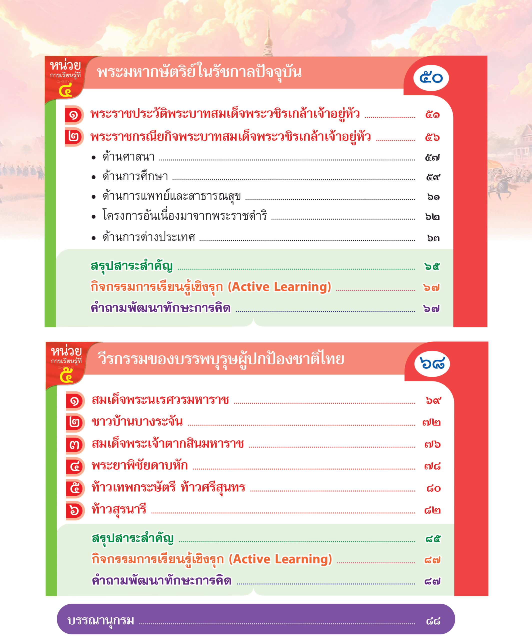 หน่วยการเรียนรู้ที่ 5 วีรกรรมของบรรพบุรุษผู้ปกป้องของชาติไทย